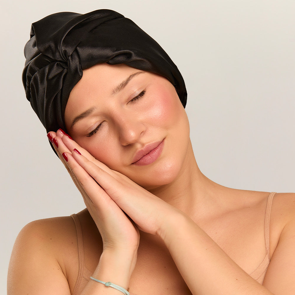 Satynowy czepek GLOV® zapobiega puszeniu, łamaniu i odgnieceniom włosów podczas snu.