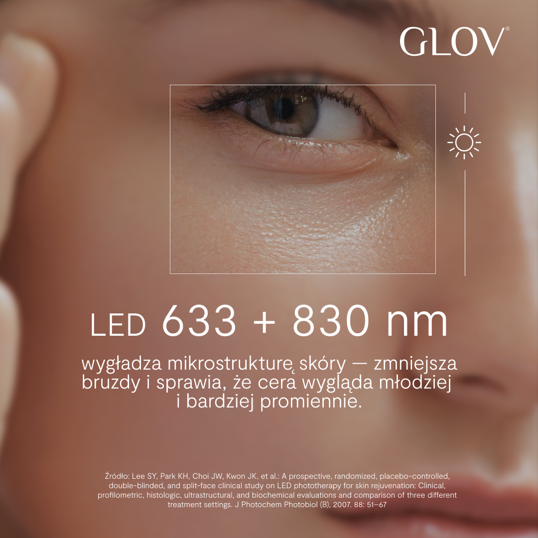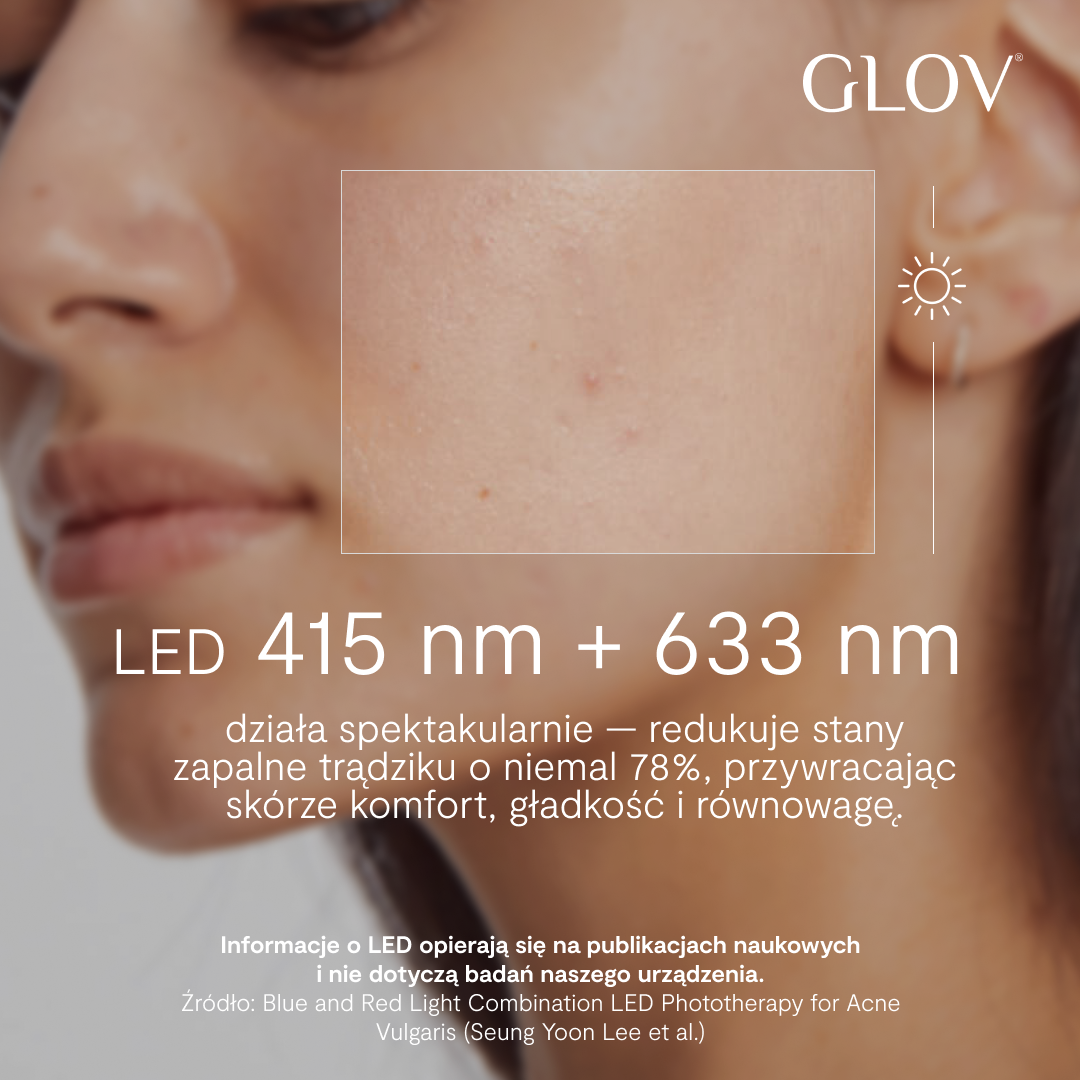 Dzięki zaawansowanej technologii LED urządzenia GLOV zapewniają realne, widoczne efekty — zdrowszą, gładszą skórę w szybki i komfortowy sposób.